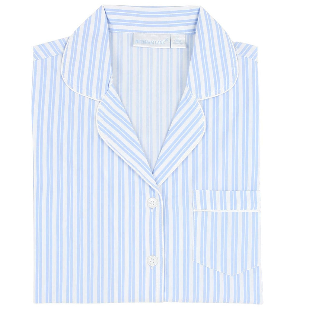 Kensington Stripe-Blue Long Sleeve Pajamas: M